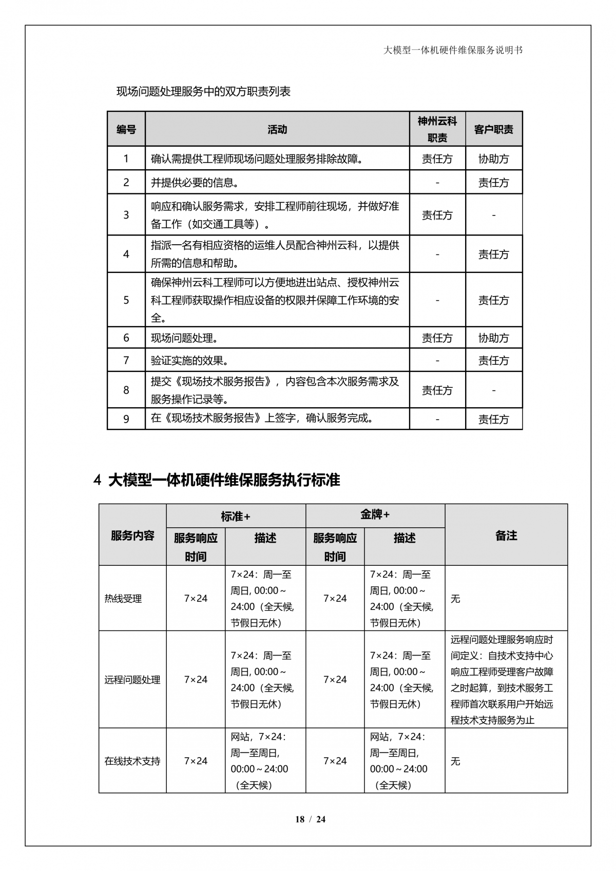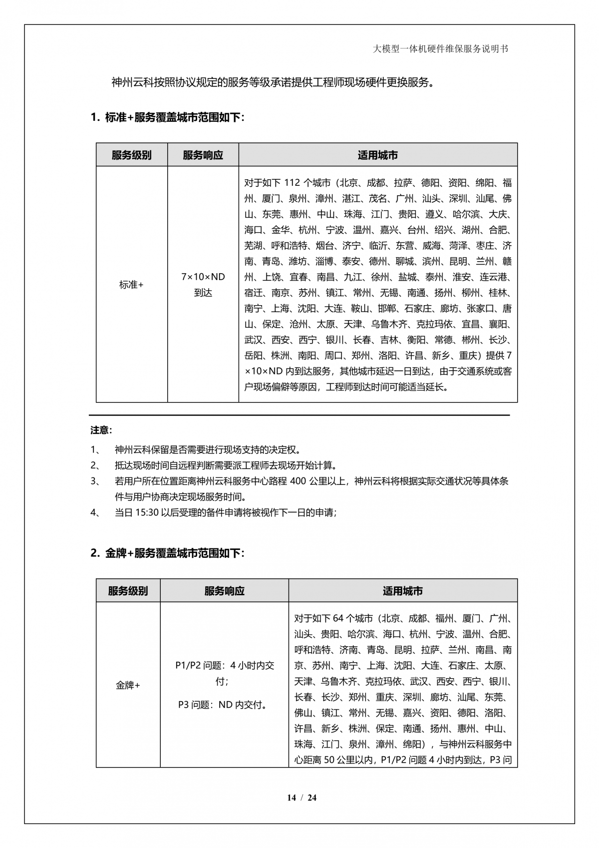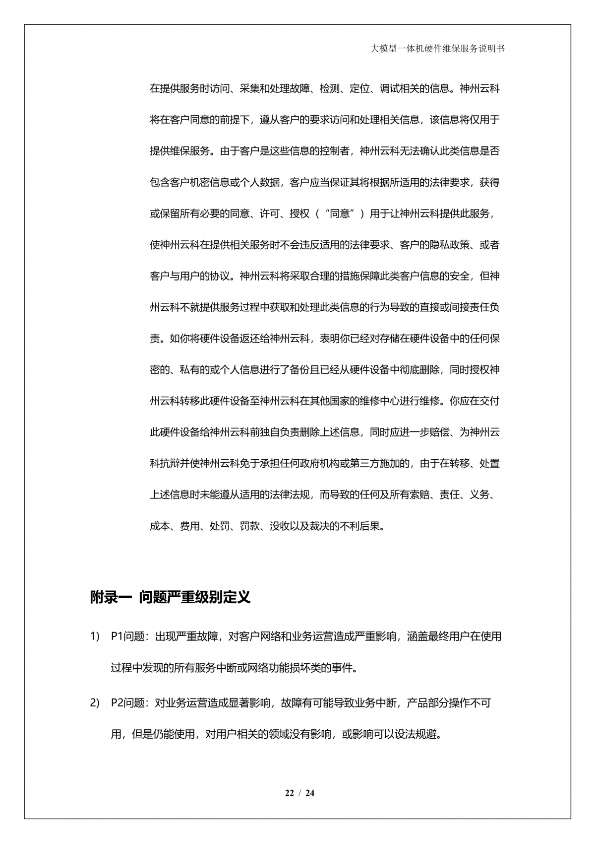 豪门国际A924 DS大模型一体机硬件维保服务说明书_V1.1