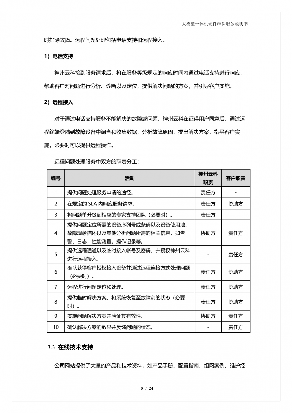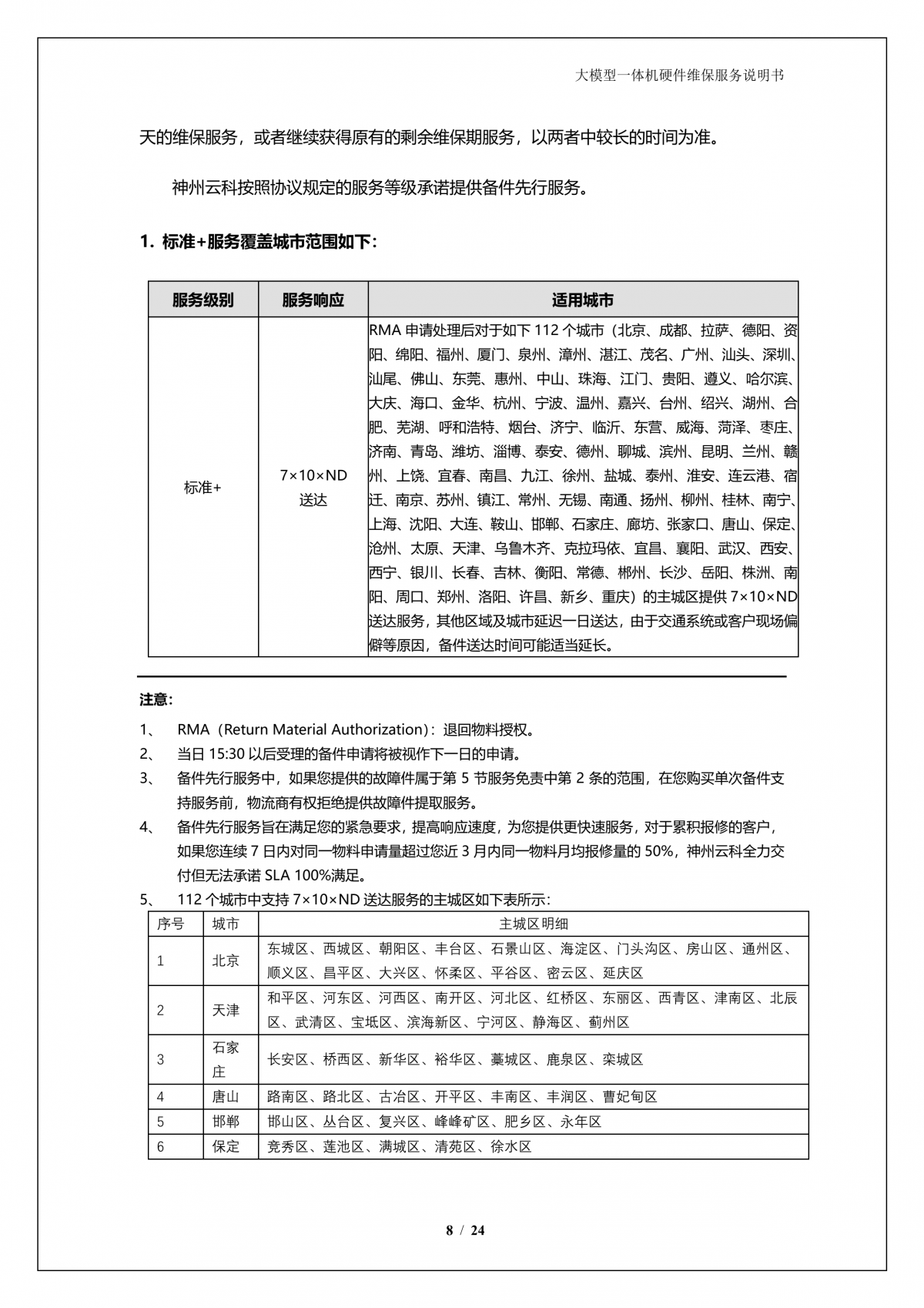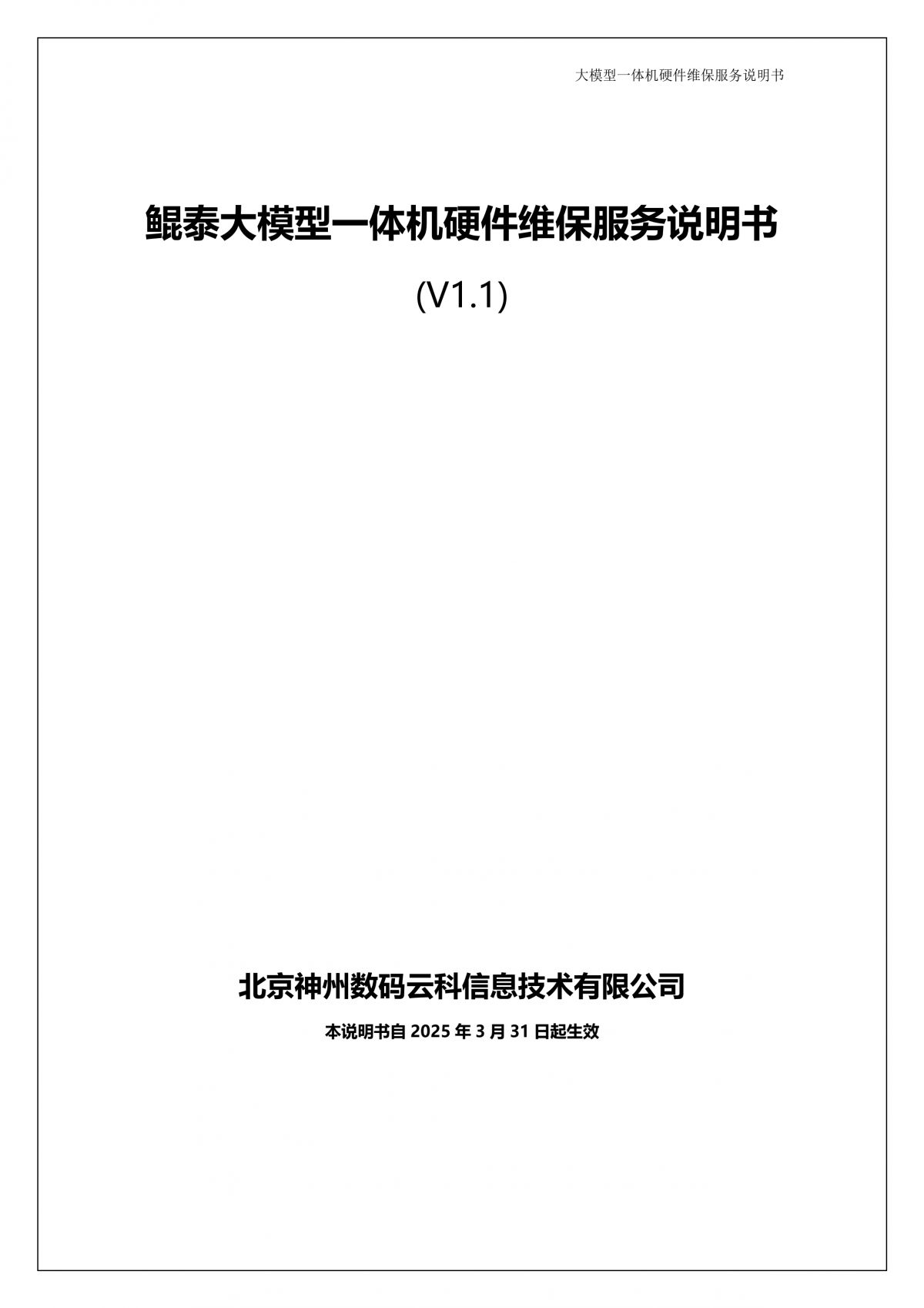 豪门国际A924 DS大模型一体机硬件维保服务说明书_V1.1