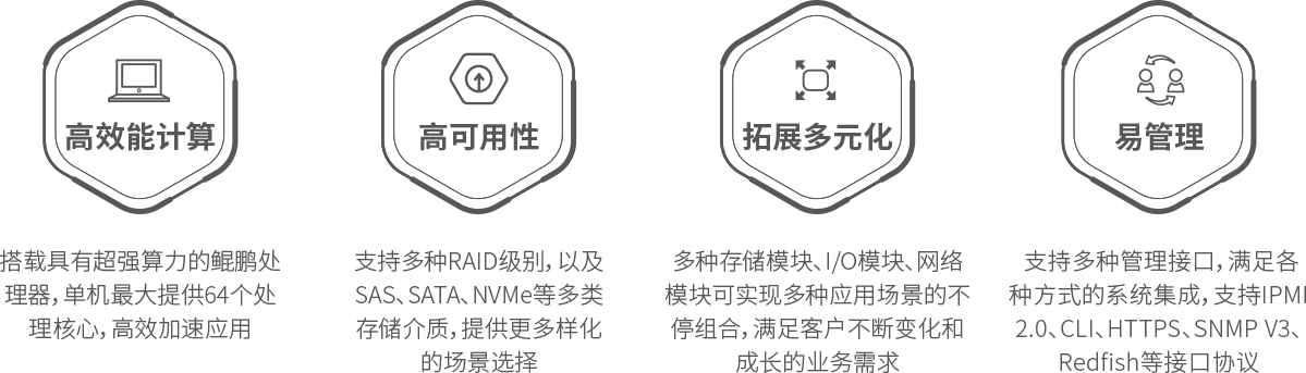 豪门国际 KunTai R721高密服务器是神州数码基于鲲鹏基础硬件推出的新一代高密度计算设备。其具备高效能计算、安全可靠与开放生态优势。