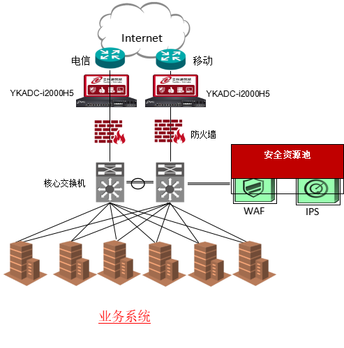 • 在客户业务的出口双机部署云科通明湖应用交付控制器,并配置链路检测配置文件,若线路故障实现自动进行主备切换故障转移。